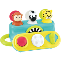 With the Early Learning Centre Pop Up Jungle Animals set, children can have fun spotting their favourite animals pop up in front of them. Little ones can figure out how to push the button, turn the dial and slide the handle on this toy. Then, they can watch the friendly faces pop out of the pod to surprise them. These brightly coloured animal friends are so fun and silly. Can your child spot their favourite animals and mimic the sounds they make? Grown-ups will appreciate that learning to push the buttons teaches baby problem-solving and fine motor skills. Discovering how the game works also encourages curiosity and builds confidence. Product Features: Set contains: 1x pop up animals toy Colourful, interactive pop-up toy with different animals and buttons Little ones can push, turn and slide the buttons to see the animals pop up Great for teaching cause and effect Product dimensions: 10cm (H) x 22cm (W) x 13cm (D) Suitable for ages 9 months +