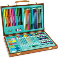 Let’s get crafting with the 67 piece Wooden Art Case from Out To Impress. This ultimate art set includes everything you need to create colourful masterpieces for your friends and family! Use the colouring pencils to perfect your drawing skills or use the water colour paints and brush to bring amazing portraits to life! Why not experiment colouring in using the wide range of oil pastels or fibre pens? The creative opportunities are endless! Display your creations on the fridge or hang them in a frame to showcase your amazing art skills! The Wooden Art Case has a helpful handle for on the go fun and is a great way to keep all your craft items stored tidily away in the study case. Encouraging creativity and imaginative play, this set is sure to provide hours of limitless creative fun! Product Features: Includes: 12x fibre pens, 15x colouring pencils, 12x watercolour cakes, 12x oil pastels, 12x gel pens, 1x metal sharpener, 1x eraser, 1x HB pencil and 1x brush Stores away neatly in a study wooden case with handle for on the go fun Encourages creativity and imaginative play Everything you need for creative play Product dimensions: 23cm (H) x 33.5cm (W) x 4.9cm (D) Suitable for ages 5 years +