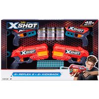 - At https://www.thetoyshop.com/ you can purchase XSHOT Excel Double Reflex 6 Blaster Double Kickback Blaster Combo Pack by ZURU for only £26.24